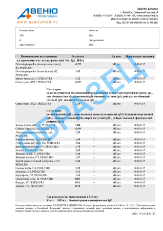 Педиатрический аллергенокомплекс номер 4 IgE, ИФА 20 показателей