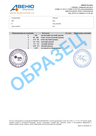 Разъяснение результатов анализов предоставляет важные сведения для доктора и не служит основанием для установления диагноза. Данные, полученные в ходе анализов, не должны применяться пациентами для самостоятельной диагностики или лечения. Окончательный диагноз определяется медицинским специалистом на основе комплексного анализа результатов данного исследования, а также истории болезни и данных из других диагностических процедур.