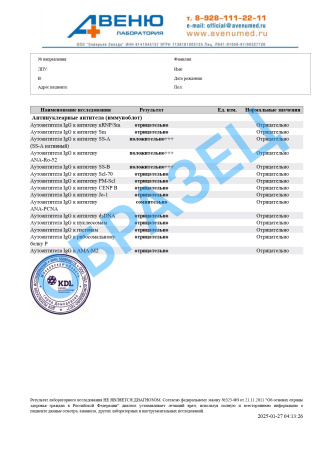 Разъяснение результатов анализов предоставляет важные сведения для доктора и не служит основанием для установления диагноза. Данные, полученные в ходе анализов, не должны применяться пациентами для самостоятельной диагностики или лечения. Окончательный диагноз определяется медицинским специалистом на основе комплексного анализа результатов данного исследования, а также истории болезни и данных из других диагностических процедур.