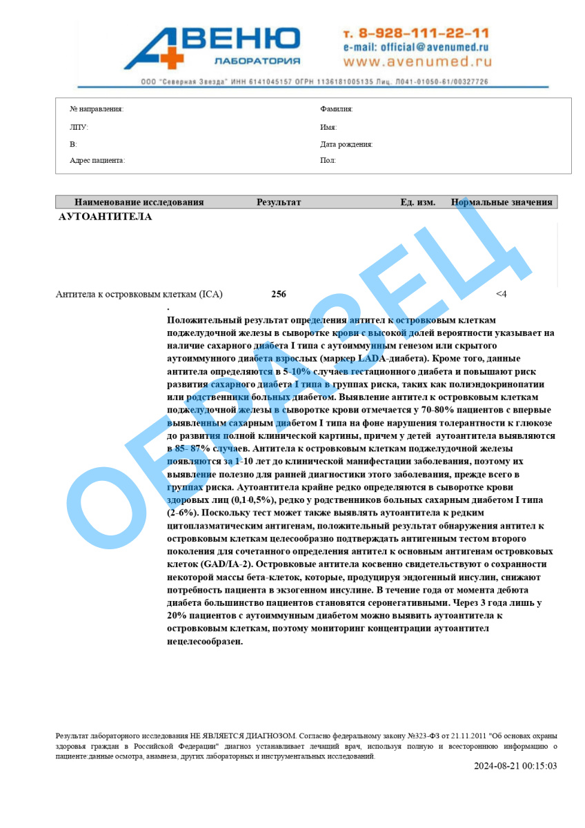 A12.06.020 Определение содержания антител к антигенам островков клеток поджелудочной железы в крови