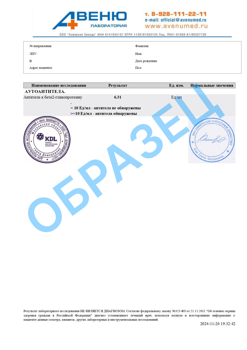 Антитела к бета-2-гликопротеину (суммарные), количественно в Ростове-на-Дону