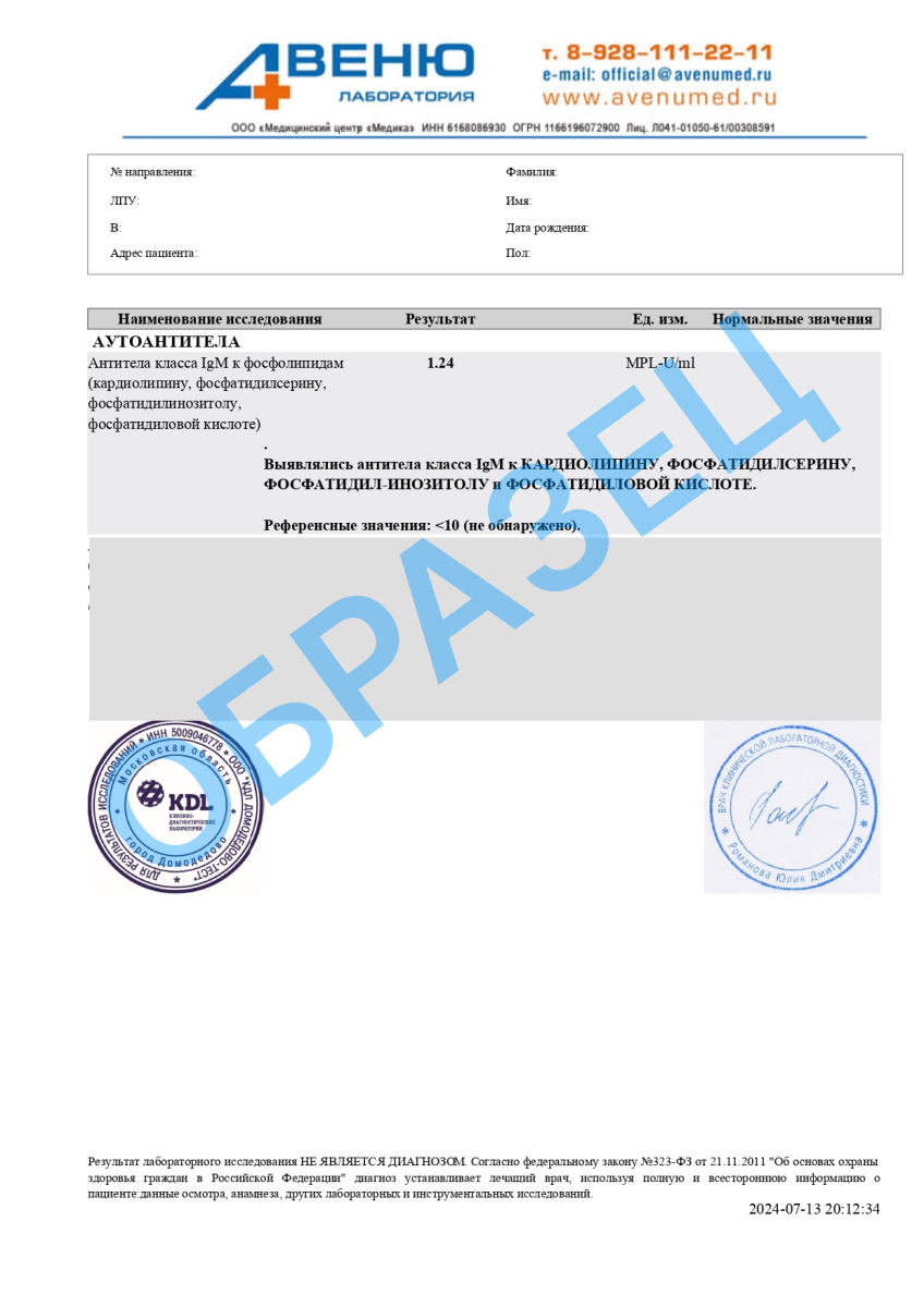 A12.06.030 Определение содержания антител к фосфолипидам в крови