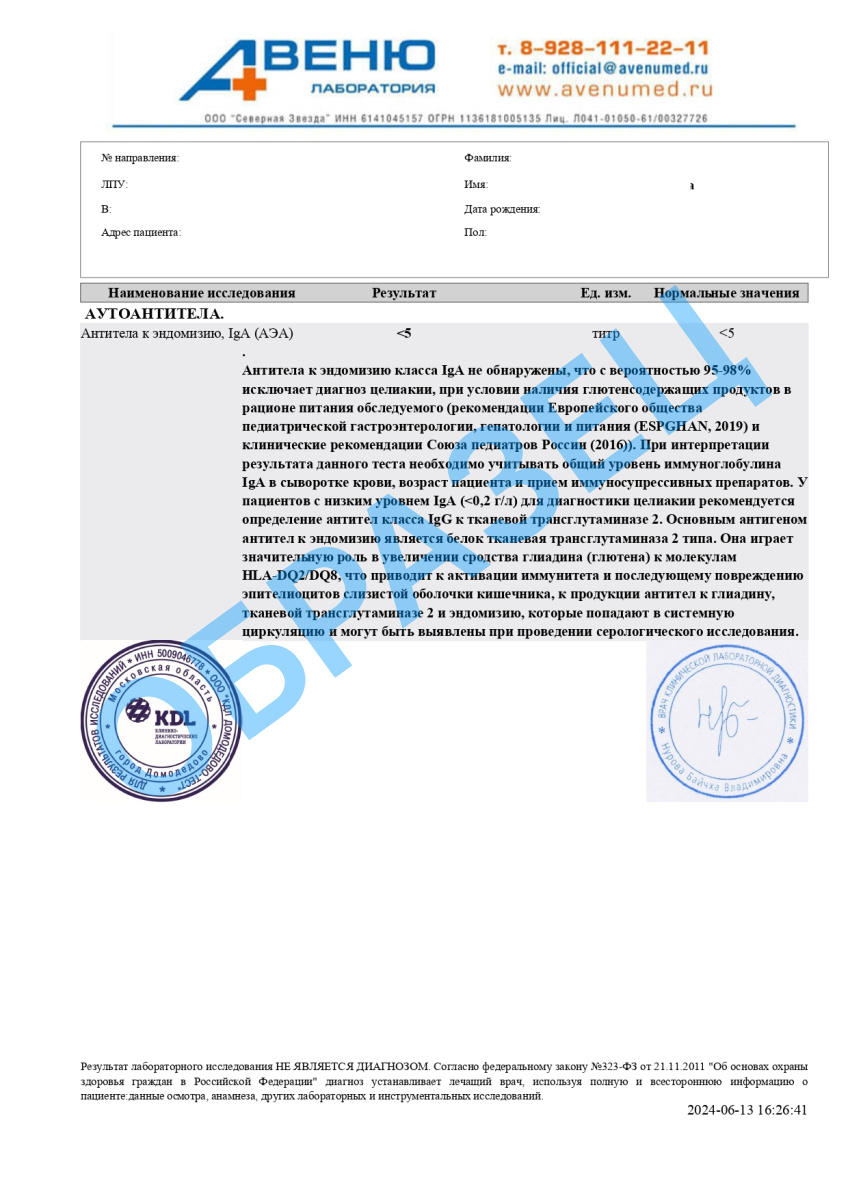 Разъяснение результатов анализов предоставляет важные сведения для доктора и не служит основанием для установления диагноза. Данные, полученные в ходе анализов, не должны применяться пациентами для самостоятельной диагностики или лечения. Окончательный диагноз определяется медицинским специалистом на основе комплексного анализа результатов данного исследования, а также истории болезни и данных из других диагностических процедур.