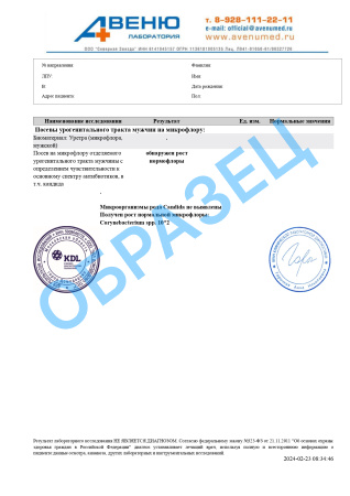 Посев из урогенитального тракта мужчины с определением чувствительности к основному спектру антибиотиков, в т.ч. кандида