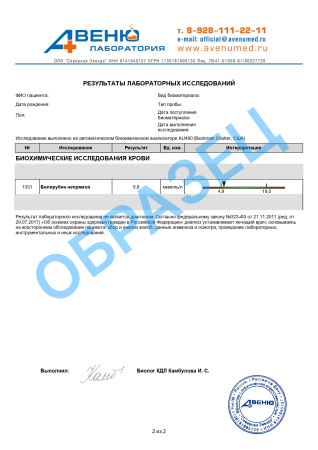 A09.05.022.001 Исследование уровня билирубина связанного (конъюгированного) в крови