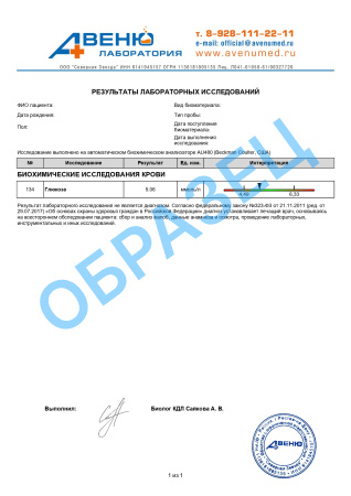 Анализ крови на глюкозу (количественно) в Ростове-на-Дону