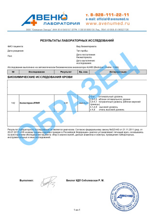 A09.05.028 Исследование уровня холестерина липопротеинов низкой плотности