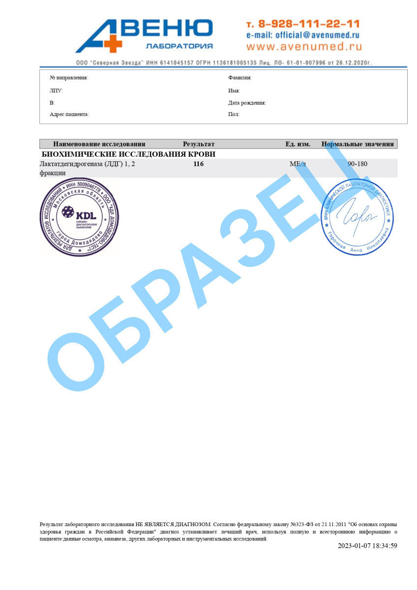 Лактатдегидрогеназа (ЛДГ) 1-2 фракции, количественно