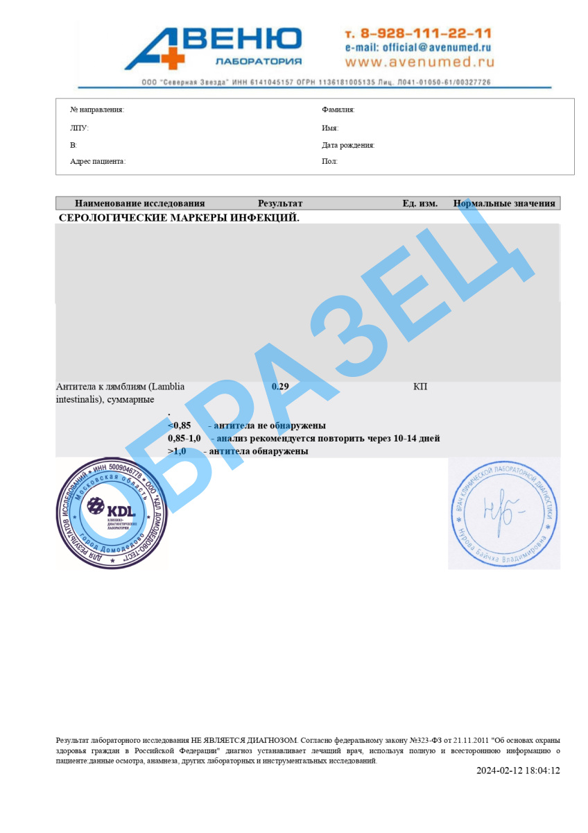 A26.06.032 Определение антител классов A, M, G (IgM, IgA, IgG) к лямблиям в крови