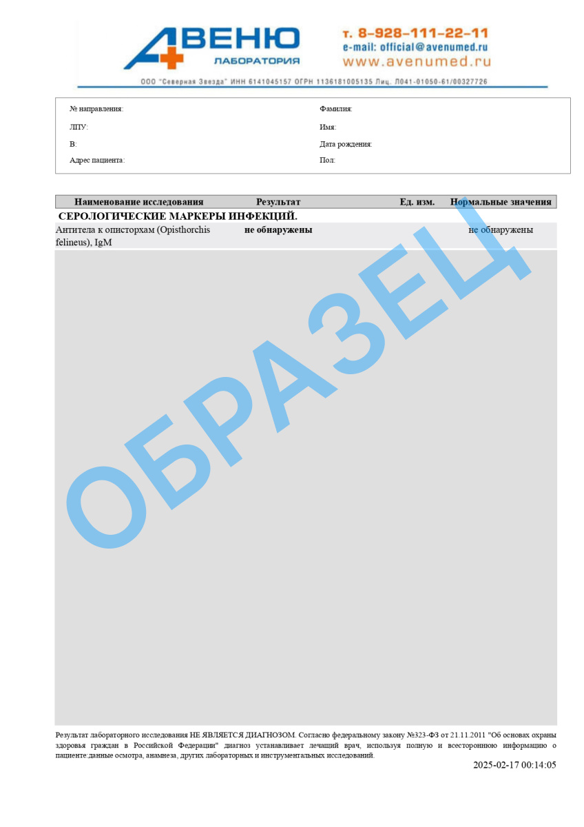 A26.06.062 Определение антител к возбудителю описторхоза (Opisthorchis felineus) в крови