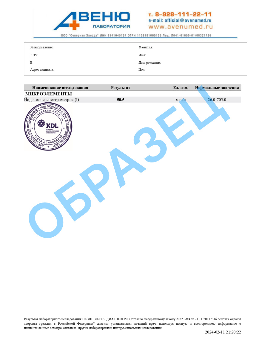 Разъяснение результатов анализов предоставляет важные сведения для доктора и не служит основанием для установления диагноза. Данные, полученные в ходе анализов, не должны применяться пациентами для самостоятельной диагностики или лечения. Окончательный диагноз определяется медицинским специалистом на основе комплексного анализа результатов данного исследования, а также истории болезни и данных из других диагностических процедур.