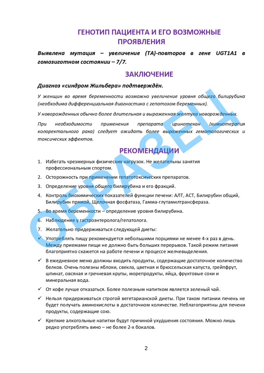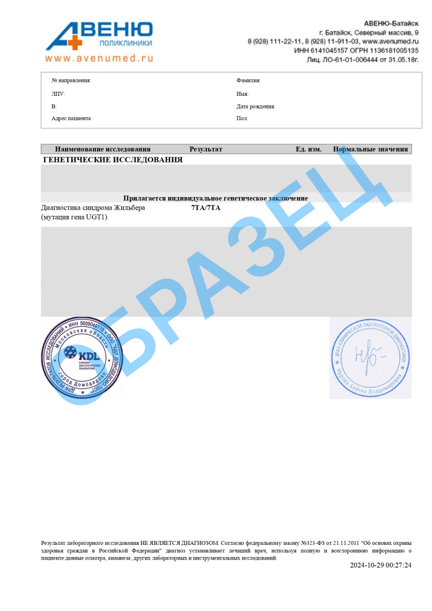Диагностика синдром Жильбера (мутация гена UGT1)
