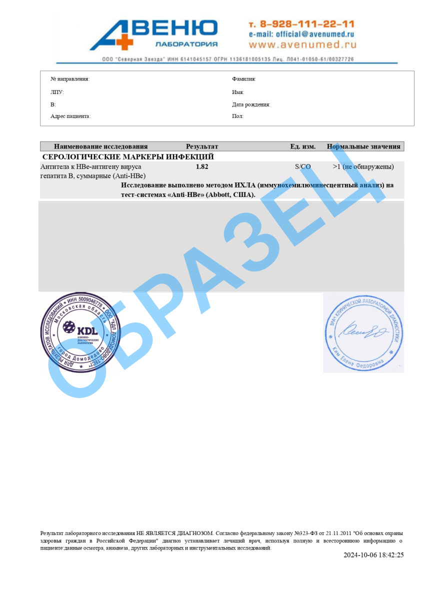 A26.06.038 Определение антител к e-антигену (anti-HBe) вируса гепатита B (Hepatitis B virus) в крови