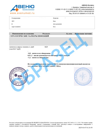 Разъяснение результатов анализов предоставляет важные сведения для доктора и не служит основанием для установления диагноза. Данные, полученные в ходе анализов, не должны применяться пациентами для самостоятельной диагностики или лечения. Окончательный диагноз определяется медицинским специалистом на основе комплексного анализа результатов данного исследования, а также истории болезни и данных из других диагностических процедур.