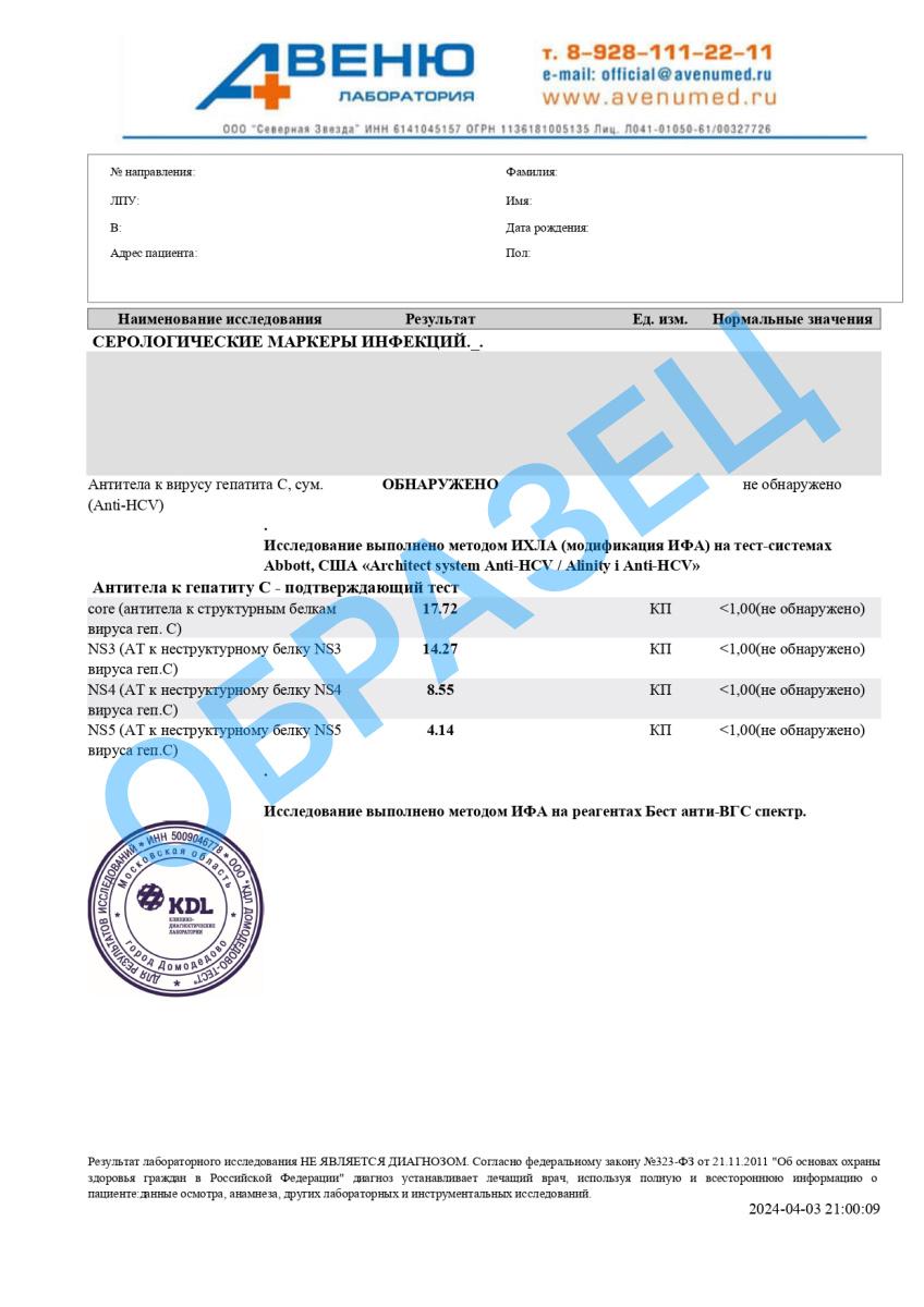 ВНИМАНИЕ! Срок выполнения данного анализа может быть увеличен до 14 дней.