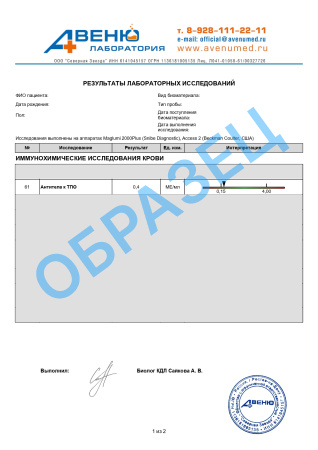 Определение концентраций антител к ТПО является одним из наиболее чувствительных тестов для диагностики аутоиммунных заболеваний щитовидной железы. Эти патологии являются основным фактором, лежащим в основе гипотиреоза и гипертиреоза, и развиваются обычно у генетически предрасположенных людей.