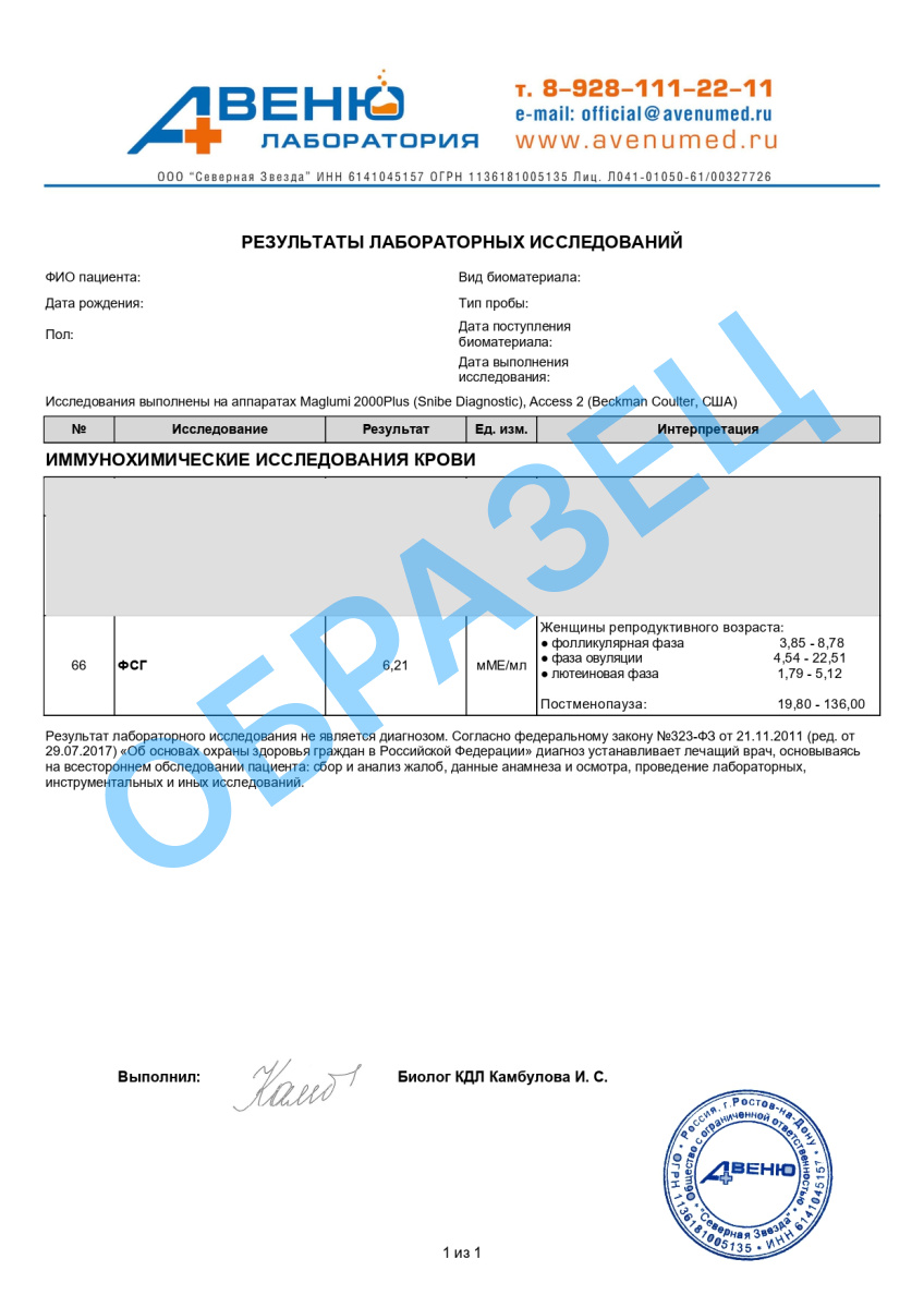 Анализ на гормон ФСГ в Ростове-на-Дону