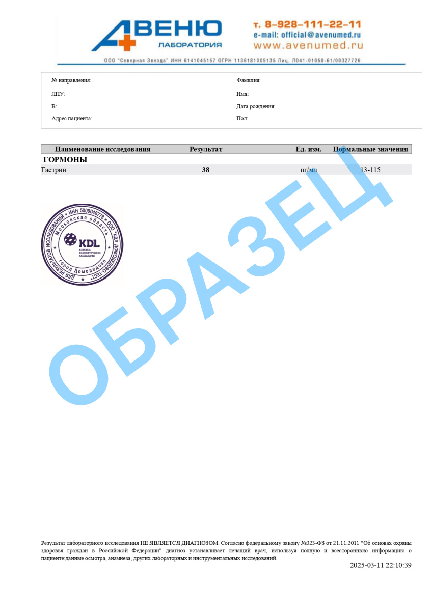 Гастрин – гормон, главным образом, образующийся в клетках желудка и в небольшом количестве в тонком кишечнике. Чем ниже кислотность желудочного сока, тем выше уровень гастрина. У пожилых людей высокое содержание гастрина в крови может указывать на естественное возрасту уменьшение выработки соляной кислоты, чем на атрофический гастрит.