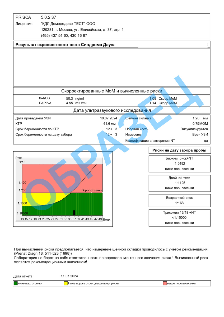 Пренатальный скрининг 1 триместра делают в срок от 11 недель до 13 недель от первого дня последнего менструального цикла.