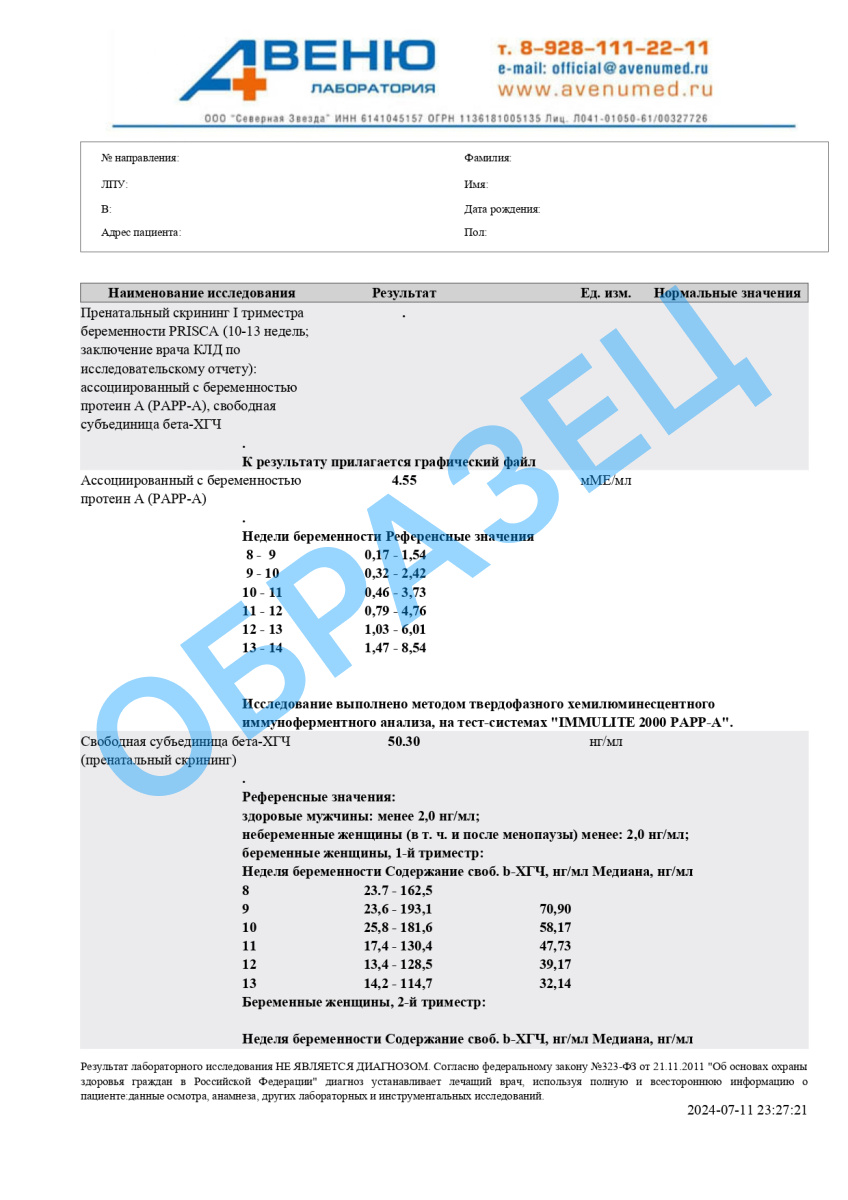 Пренатальный скрининг 1 триместр беременности (РАРР-А, бета ХГЧ), количественно в Ростове-на-Дону