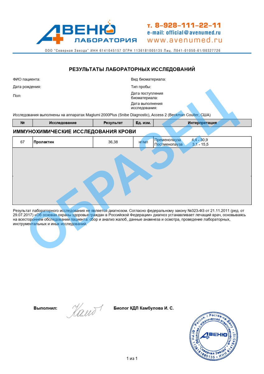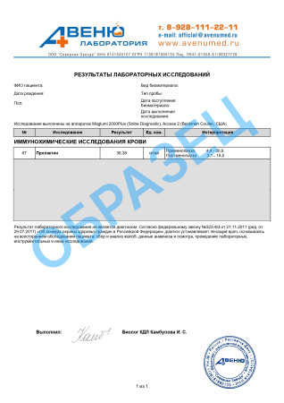 Разъяснение результатов анализов предоставляет важные сведения для доктора и не служит основанием для установления диагноза. Данные, полученные в ходе анализов, не должны применяться пациентами для самостоятельной диагностики или лечения. Окончательный диагноз определяется медицинским специалистом на основе комплексного анализа результатов данного исследования, а также истории болезни и данных из других диагностических процедур.