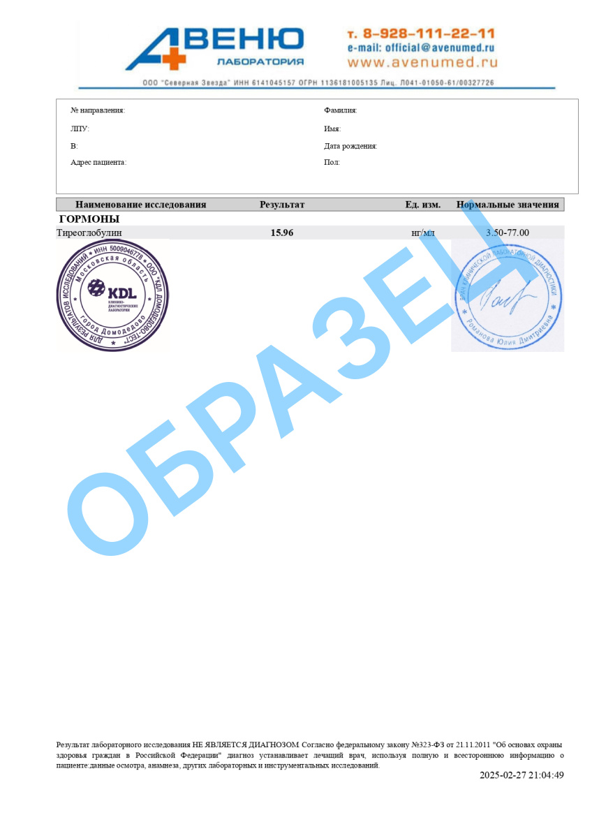 Анализ на тиреоглобулин в Ростове-на-Дону