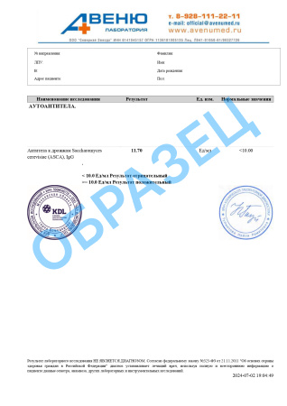 Антитела к Saccharomyces cerevisiae (ASCA), IgG, количественно