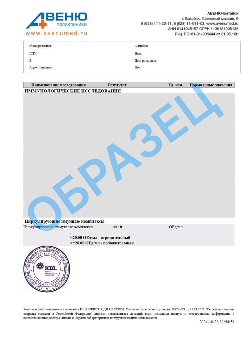 A09.05.074 Исследование уровня циркулирующих иммунных комплексов в крови