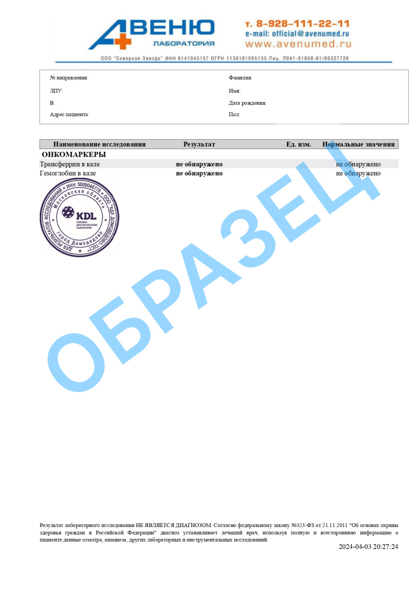 Результат анализа кала на гемоглобин и трансферрин может быть представлен следующими вариантами: