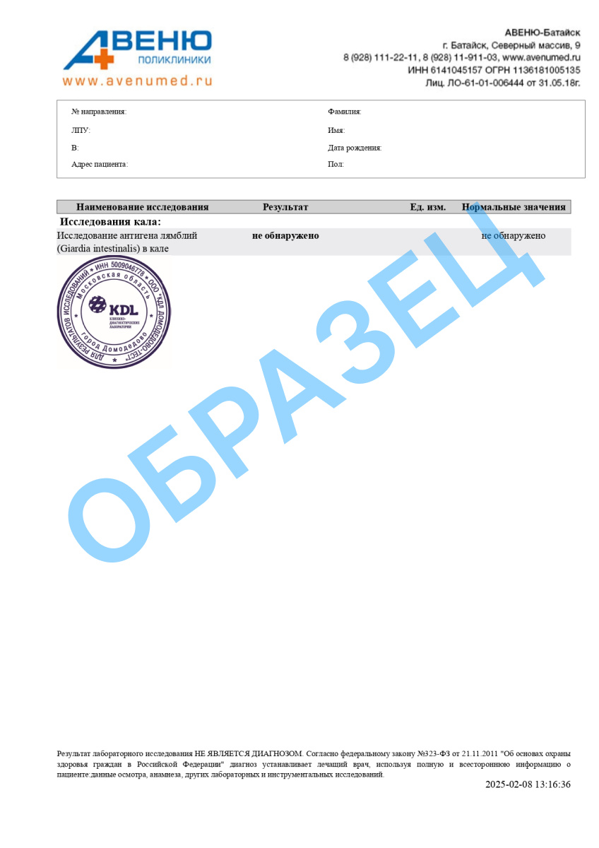 A26.19.037 Определение антигенов лямблий (Giardia lamblia) в образцах фекалий