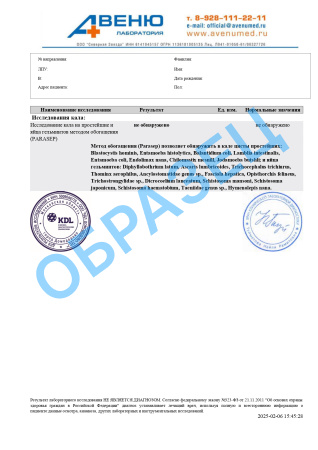 Исследование кала на простейшие и яйца гельминтов методом обогащения (PARASEP), качественно