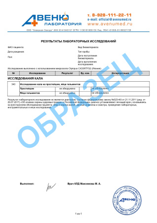 A26.19.010 Микроскопическое исследование кала на яйца и личинки гельминтов