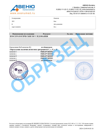 Интерпретация результатов проводится только врачом — на основании данных анамнеза, наличия антител, акушерского анамнеза и индивидуальных рисков. Определение Келл-антигена (фактора Kell, K) не заменяет стандартный скрининг антиэритроцитарных антител.