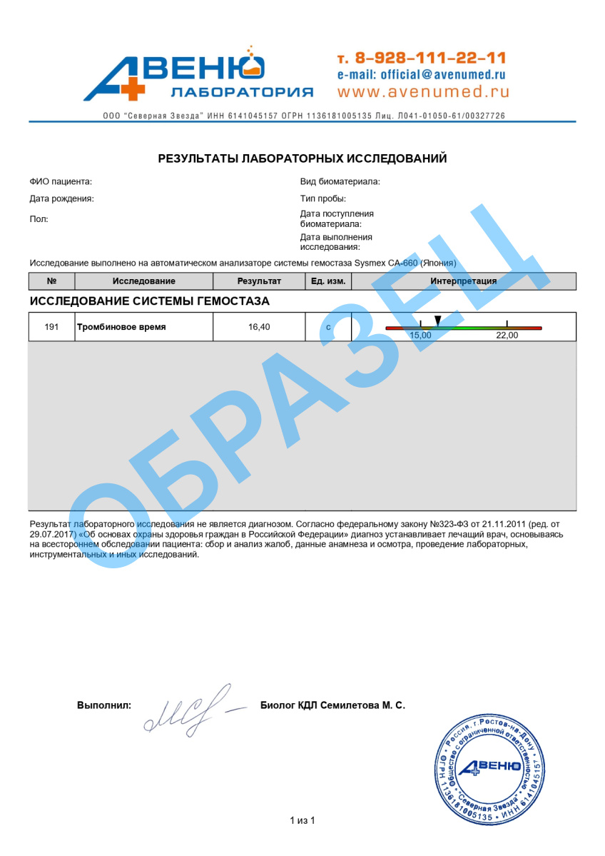 *Примечание: тромбин является протеолитическим ферментом, основным реагентом теста. Исключительно с его помощью можно превратить растворимый фибриноген плазмы в нерастворимый.