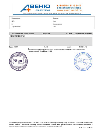 Разъяснение результатов анализов предоставляет важные сведения для доктора и не служит основанием для установления диагноза. Данные, полученные в ходе анализов, не должны применяться пациентами для самостоятельной диагностики или лечения. Окончательный диагноз определяется медицинским специалистом на основе комплексного анализа результатов данного исследования, а также истории болезни и данных из других диагностических процедур
