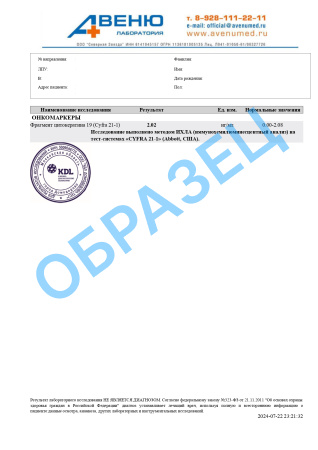Фрагмент цитокератина 19 (Cyfra 21-1), количественно