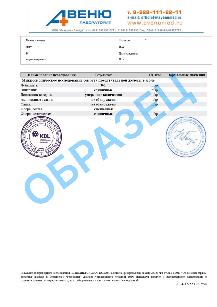 A12.21.003 Микроскопическое исследование уретрального отделяемого и сока простаты