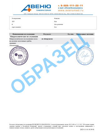Микроскопическое исследование волос на дерматомицеты A26.01.011