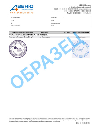Разъяснение результатов анализов предоставляет важные сведения для доктора и не служит основанием для установления диагноза. Данные, полученные в ходе анализов, не должны применяться пациентами для самостоятельной диагностики или лечения. Окончательный диагноз определяется медицинским специалистом на основе комплексного анализа результатов данного исследования, а также истории болезни и данных из других диагностических процедур.