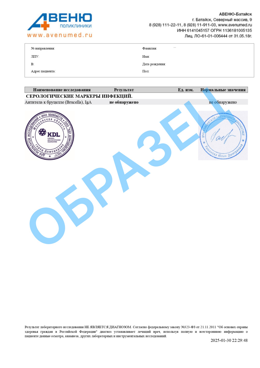 сдавайте кровь на бруцеллёз утром натощак (допустимо пить негазированную воду);
