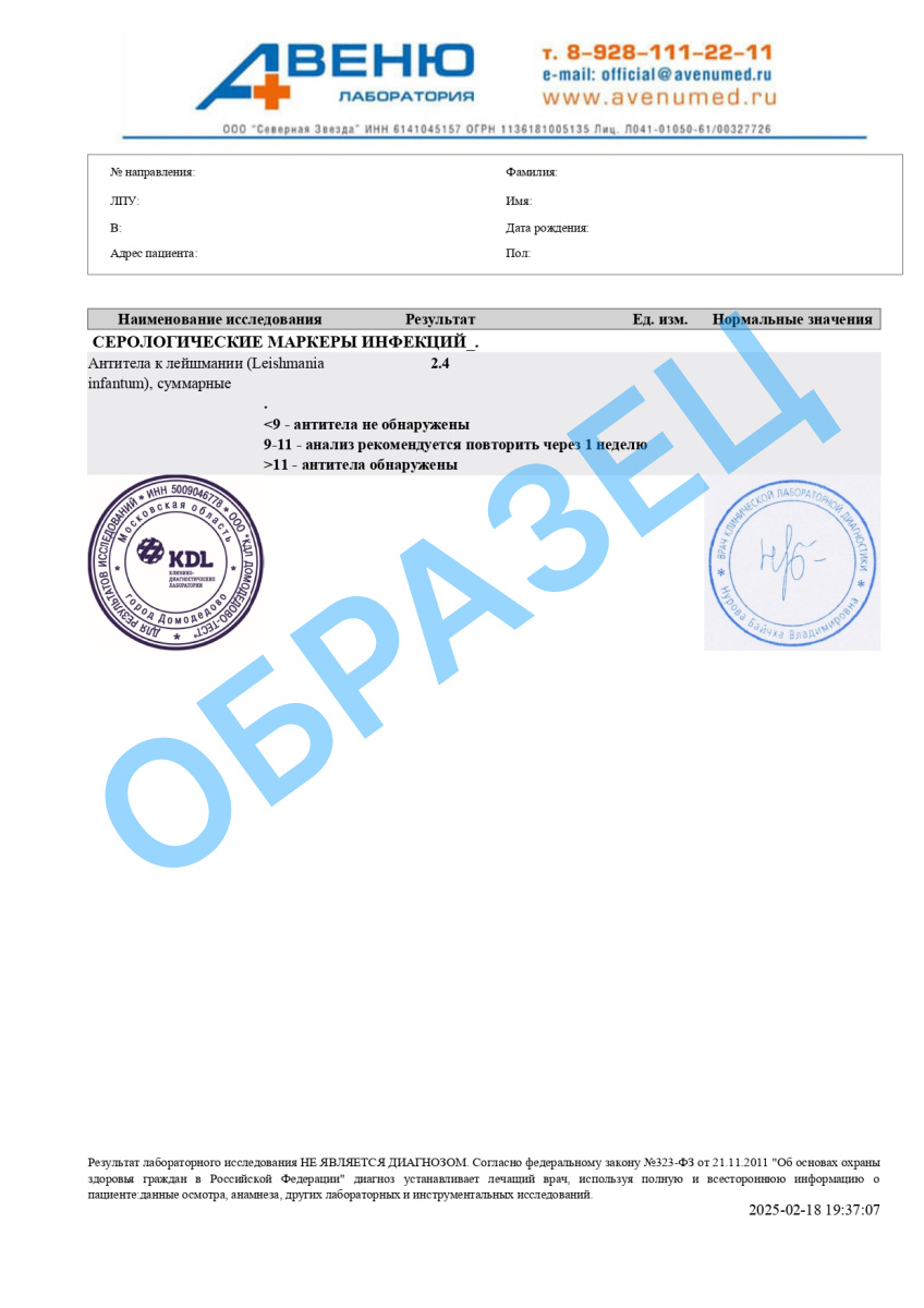 A26.06.053 Определение антител к лейшмании (Leischmania) в крови