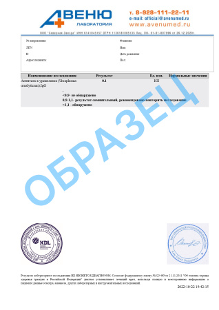 Разъяснение результатов анализов предоставляет важные сведения для доктора и не служит основанием для установления диагноза. Данные, полученные в ходе анализов, не должны применяться пациентами для самостоятельной диагностики или лечения. Окончательный диагноз определяется медицинским специалистом на основе комплексного анализа результатов данного исследования, а также истории болезни и данных из других диагностических процедур.