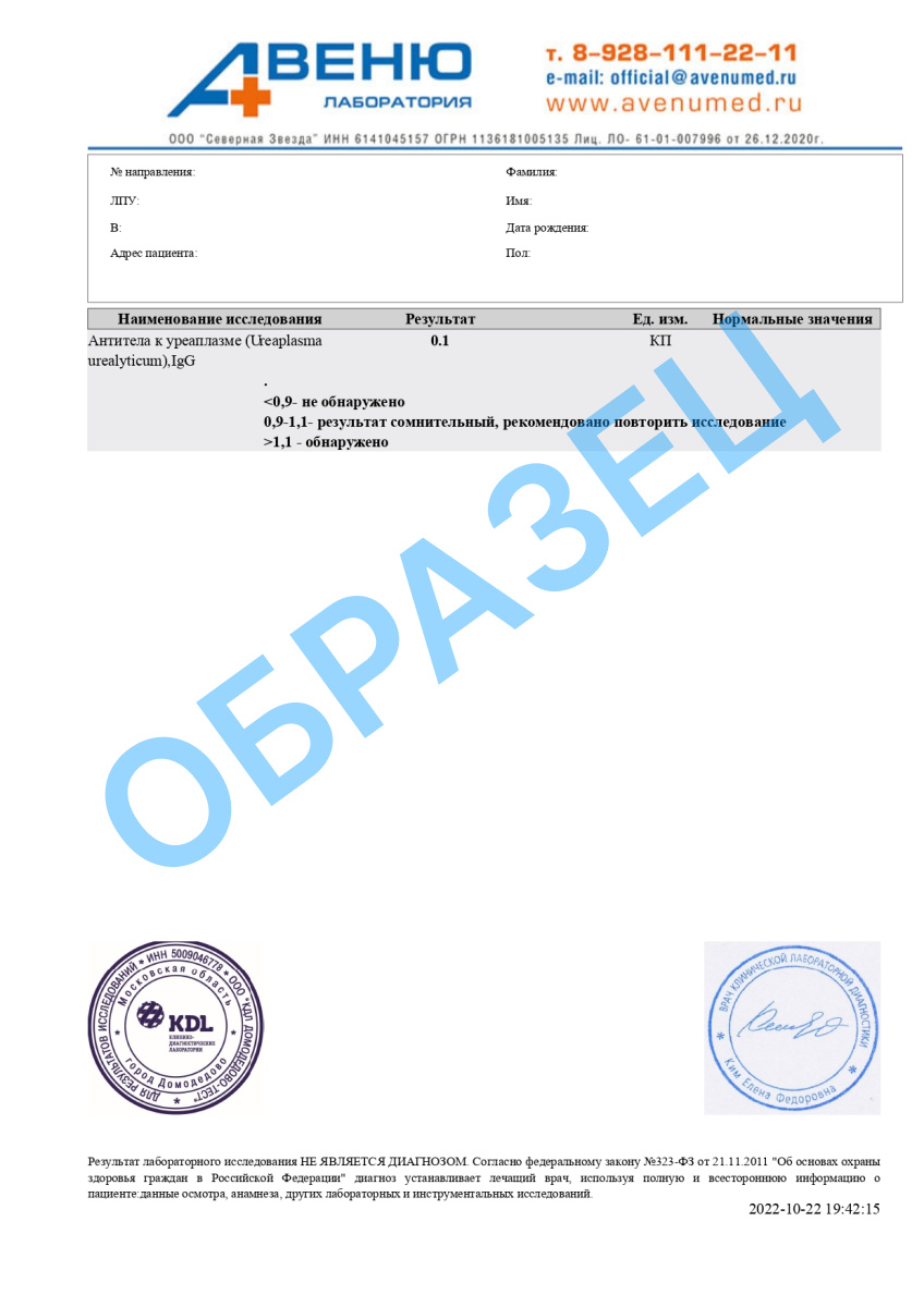 Антитела к уреаплазме (Ureaplasma urealyticum), IgG, полуколичественно