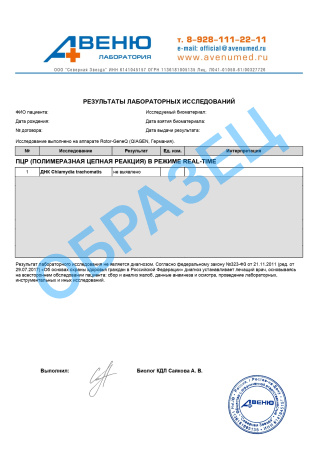 A26.20.020.001 Определение ДНК хламидии трахоматис (Chlamydia trachomatis) в отделяемом слизистых оболочек женских половых органов методом ПЦР