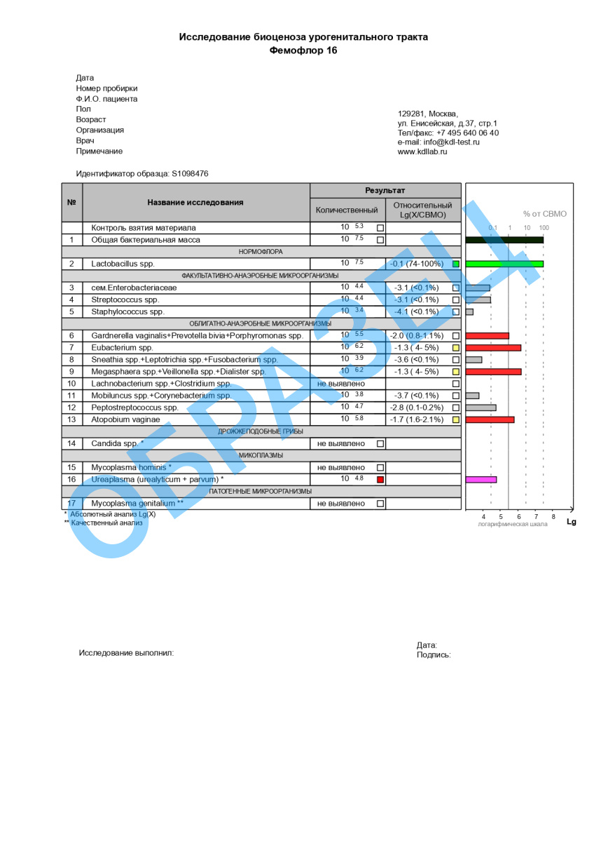 Фемофлор 16 – расширенный протокол исследования биоценоза влагалища с использованием метода ПЦР. По результатам этого анализа можно:
