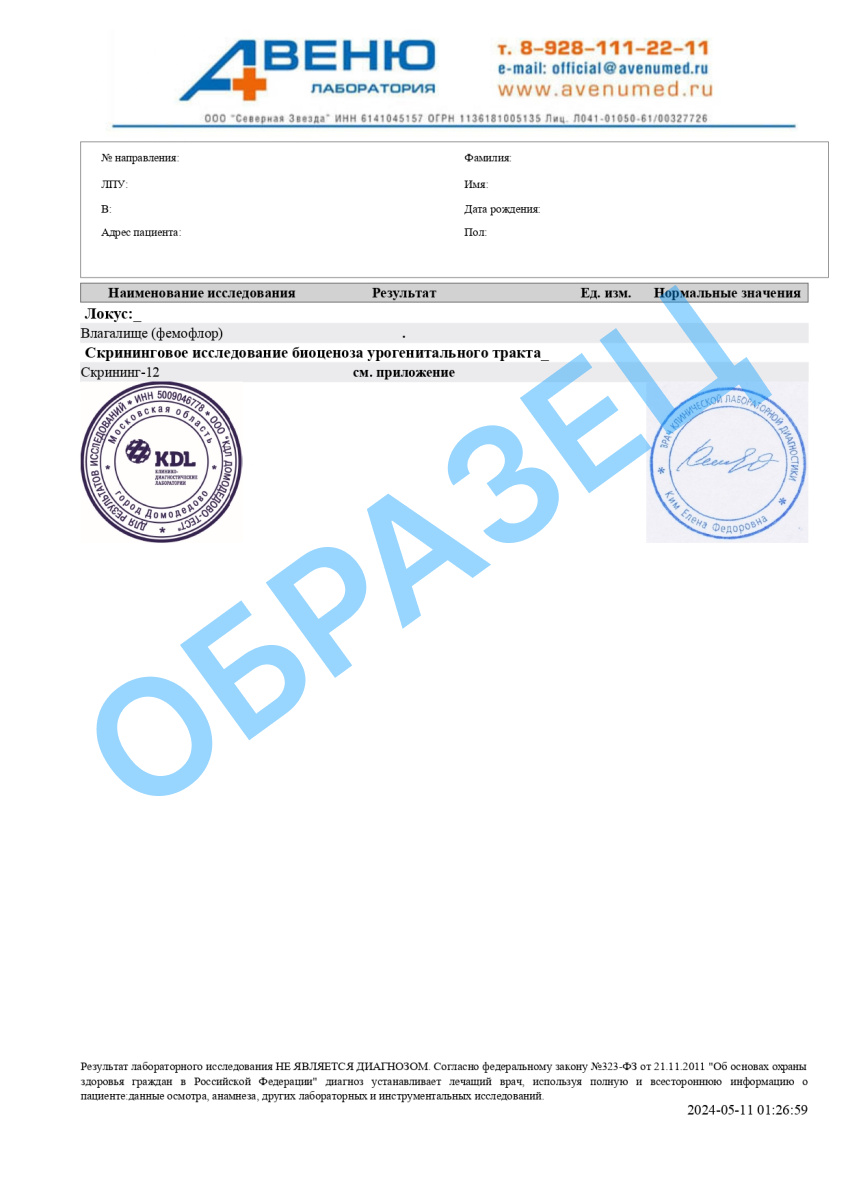 Фемофлор скрин 12 – комплексное исследование, позволяющее идентифицировать микроорганизмы в урогенитальном тракте, а также оценить их количество в режиме реального времени. Он помогает увидеть, в каком соотношении находятся условно-патогенные микроорганизмы и лактобациллы, показывает присутствие половых инфекций (ИППП), цитомегаловируса и вирусов простого герпеса 1 и 2 типа.