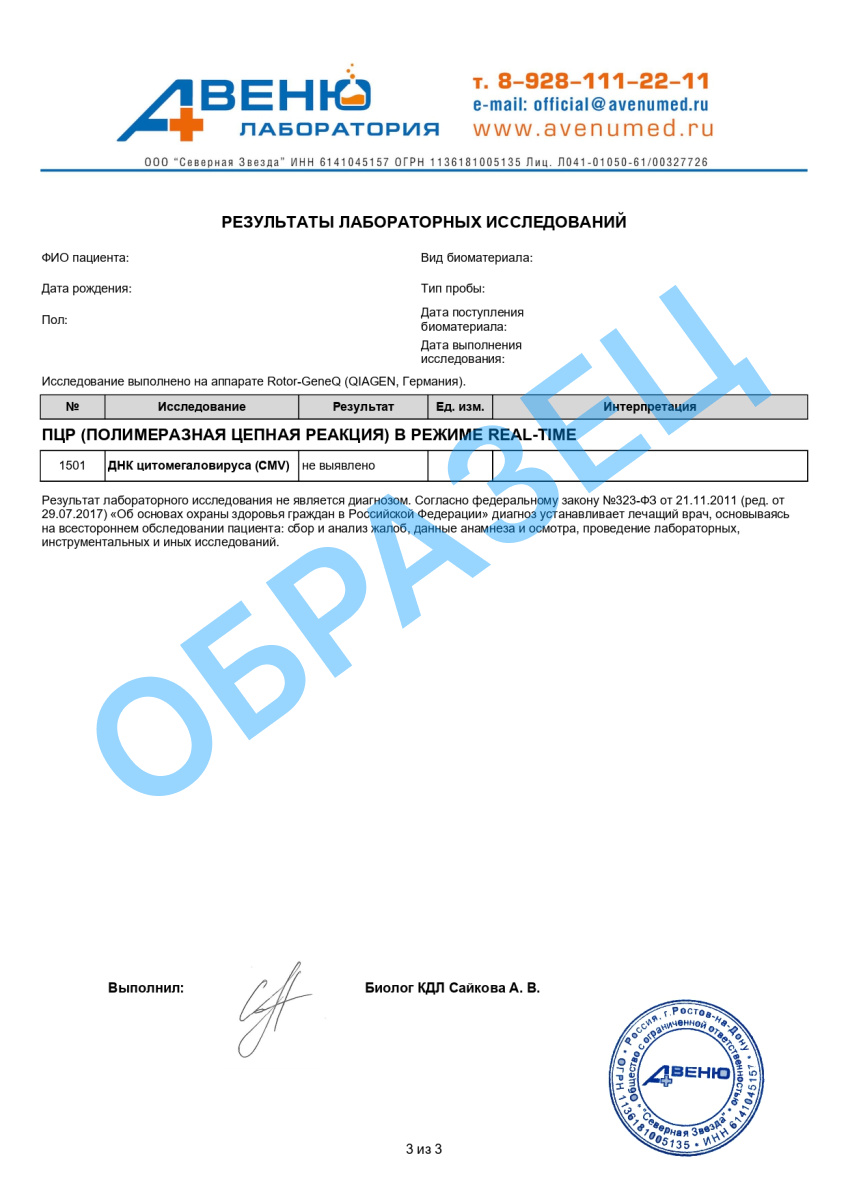 - ДНК Цитомегаловируса (CMV, ПЦР), кач.