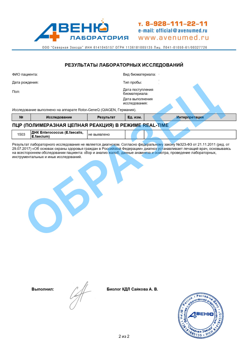 6. Флороценоз – Аэробы: ДНК Энтеробактерии, Стафилококки, Стрептококки (Enterobacteriaceae, Staphylococcus spp, Streptococcus spp, ПЦР), кол.