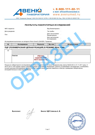 A26.05.019.003 Определение генотипа вируса гепатита C (Hepatitis C virus)