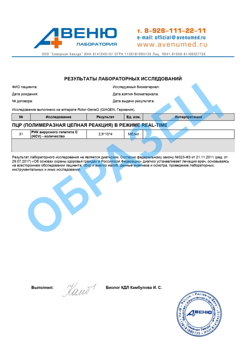 Результат анализа вируса гепатита C